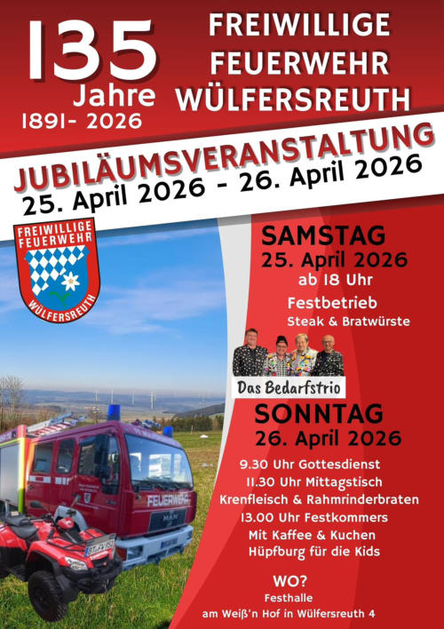 Als Ortsteil der Gemeinde Bischofsgrün unterstützt die Freiwillige Feuerwehr Wülfersreuth den 4. Löschzug des